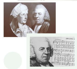 ▼下圖分別是考伯和牛頓的畫像以及牛頓寫的《奇異恩典》詩歌